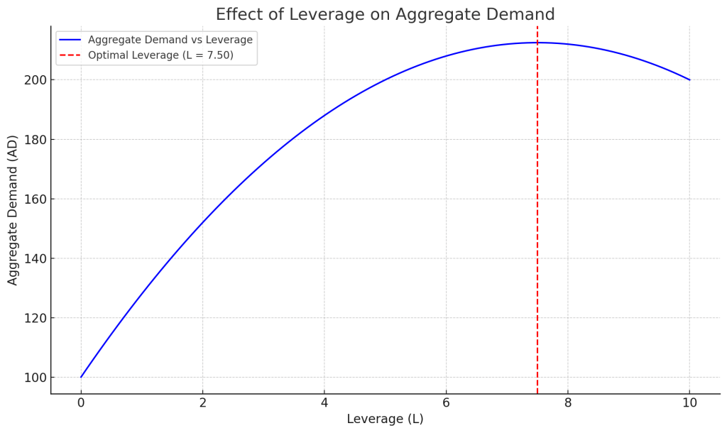 Short term goals often lead to short term solutions.Rate cut or increasing leverage in the economy to boost consumption is one such solution.There is a relentless narrative in the market that reducing rates will boost consumption but that is ill founded belief far away from economic theory and belief.Leverage can only increase the consumption up to a point but after that point it starts having diminishing returns.The graph below shows that how leverage increases the demand initially but after that it plateaus out and starts falling.This is ‘short-termism’ and gives a coverage to actual problem India is facing.
